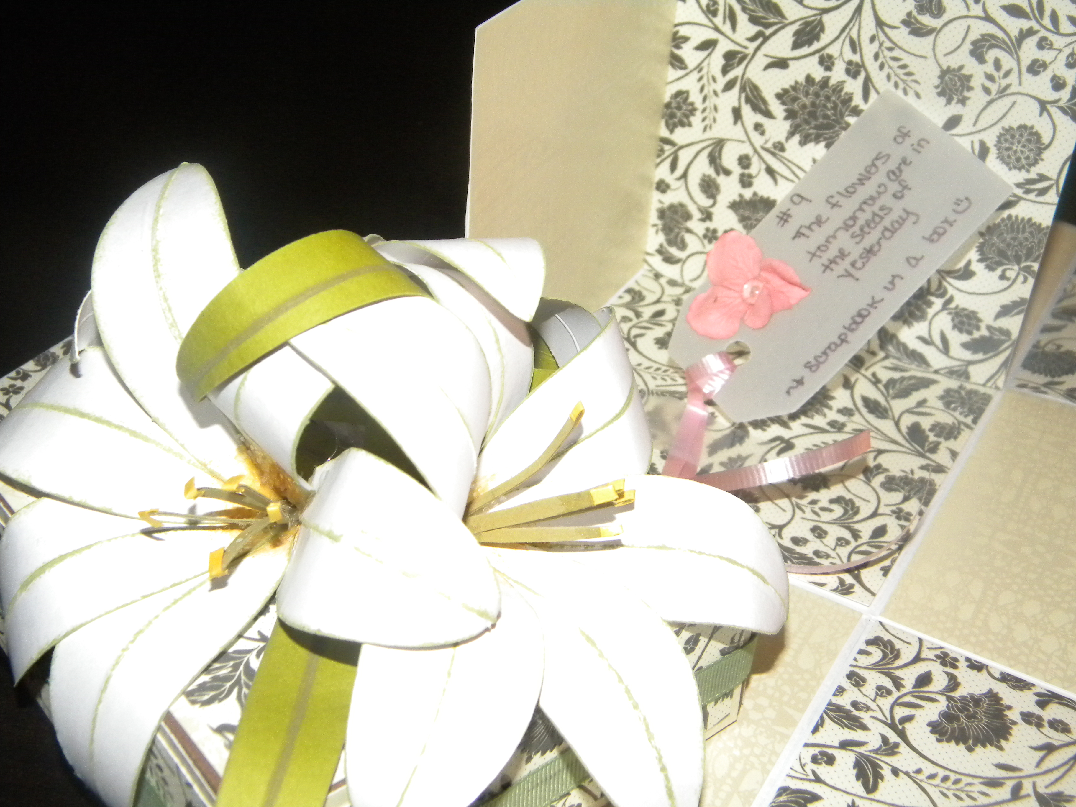 2. The flowers of tomorrow are in the seeds of Yesterday. (A Scrapbook in a box – let me tell you these flowers are BEAUTIFUL that she put on the top of this AWESOME Box! So much inking and details, just made perfect!)