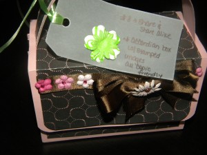 Now, today I want to share with she gave to me!! 🙂 I received my box yesterday, and let me tell you, yesterday was one CRAZY “bad” day for me, so the box was DEFINITELY a BIG HUGE Bright Spot! It was like CHRISTMAS!!! 🙂 SOOOOO FUN!