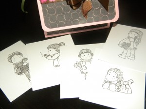 1. Share and Share A Like (Accordion Box FILLED with stamped images ready for Copic Coloring) – I just LOVE this! This one is absolutely my FAVORITE! I love the colors she used for the “purse” and I can’t believe all the time she took to FILL this with such adorable stamps!!!