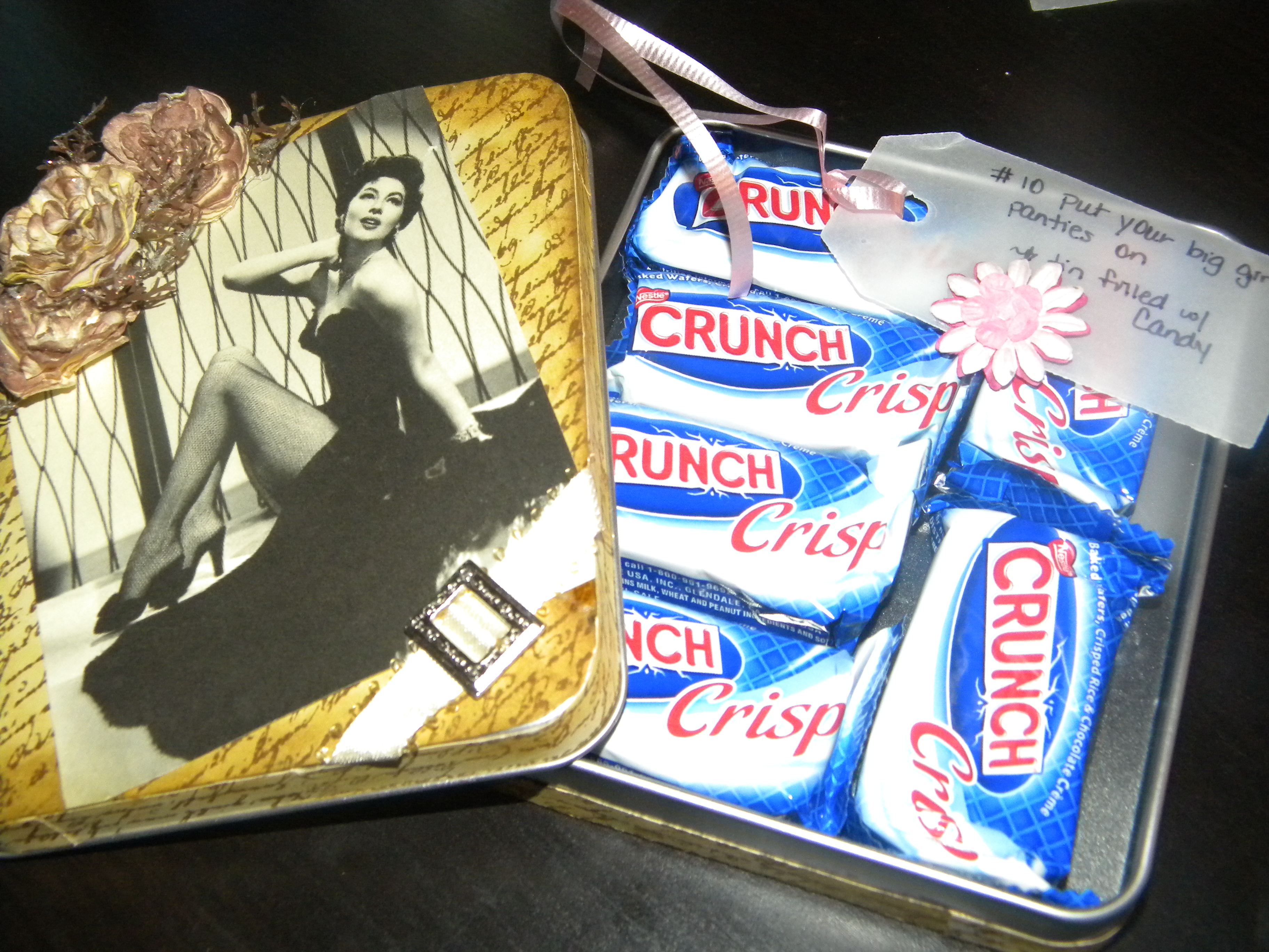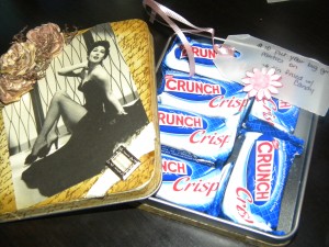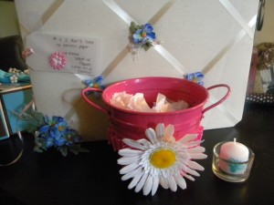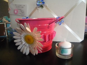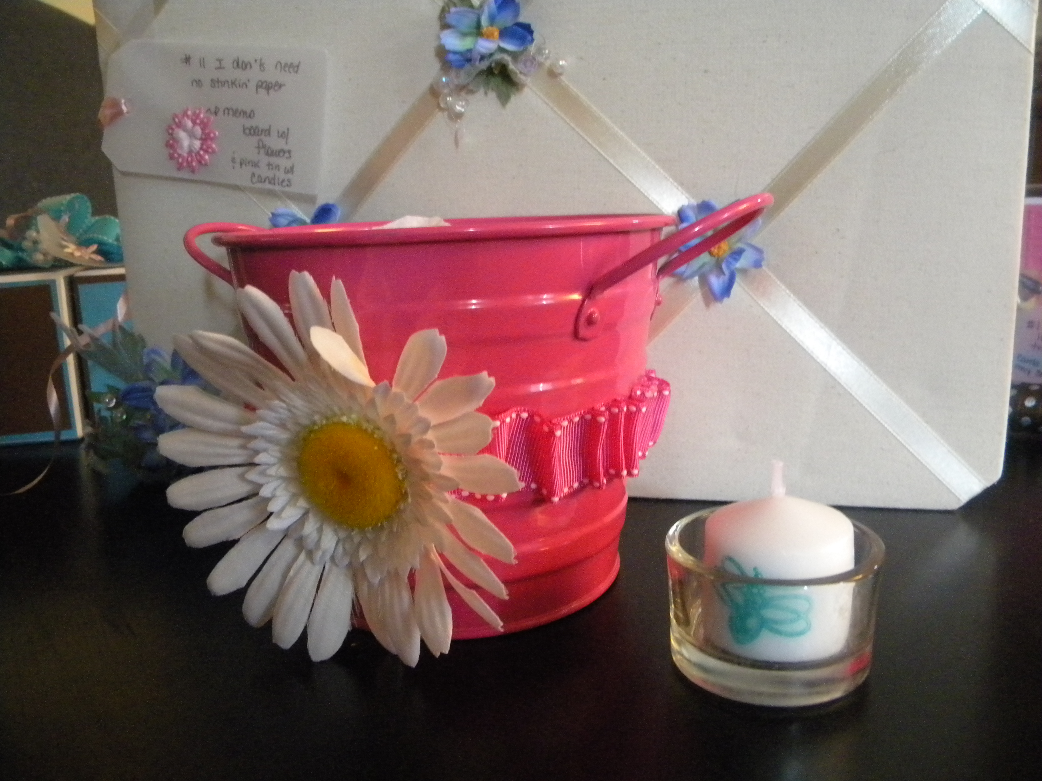5. I Don’t Need No Stinkin’ Paper! (Very cute little message board and the adorable pink tin with stamped candles!