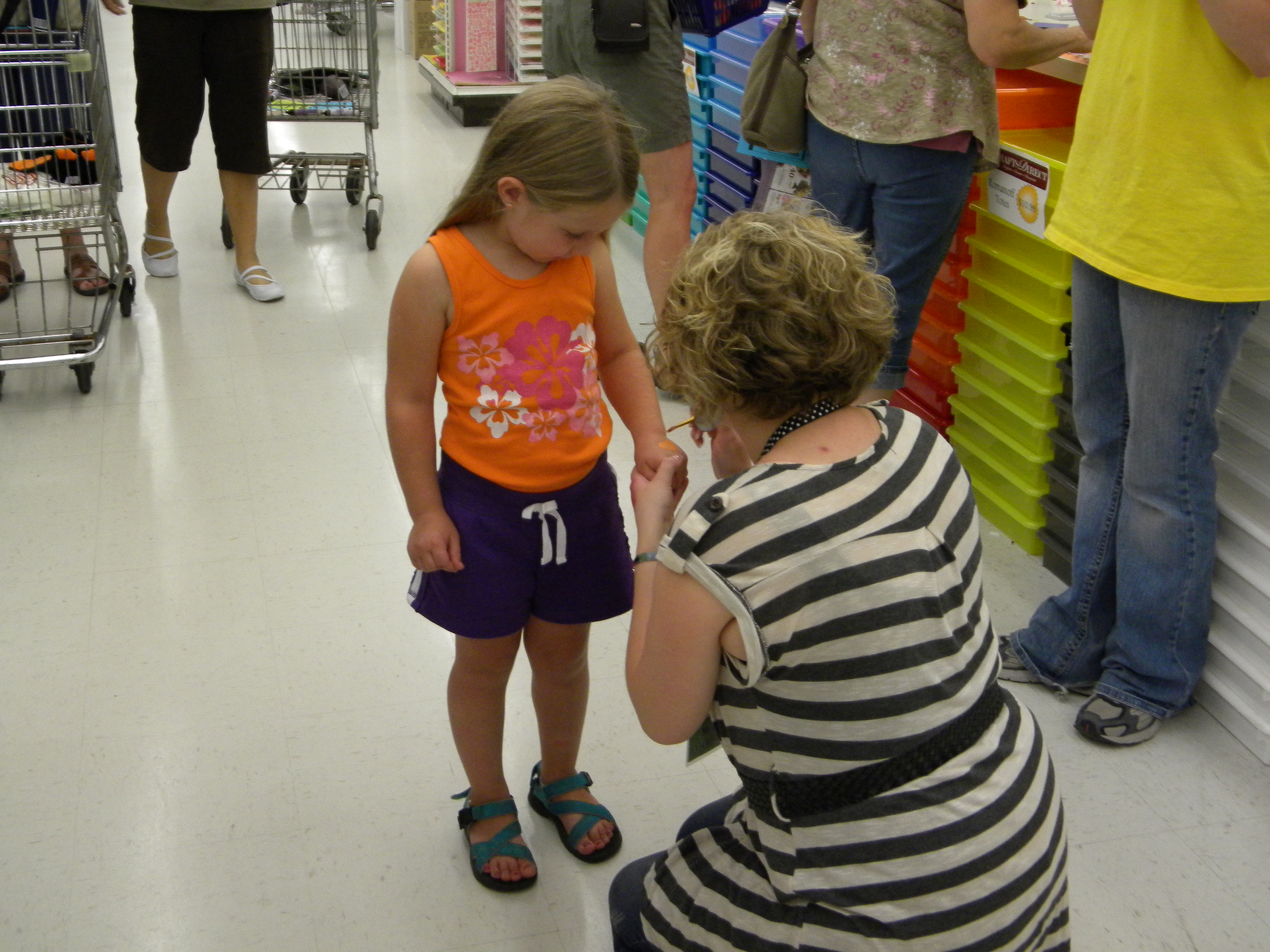 This little girl was SO sweet and enjoyed watching all the demos and so we used Viva Decor Inka Gold to paint some hearts and flowers on her hands and cheek.
