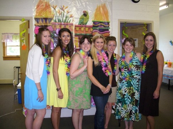 I thought I would share some of the pictures from my sisters first bridal shower. We had a really fun Hawain theme and we went as far out with it as we could! We had the shower at my parents church so we bought all kinds of fun decorations!