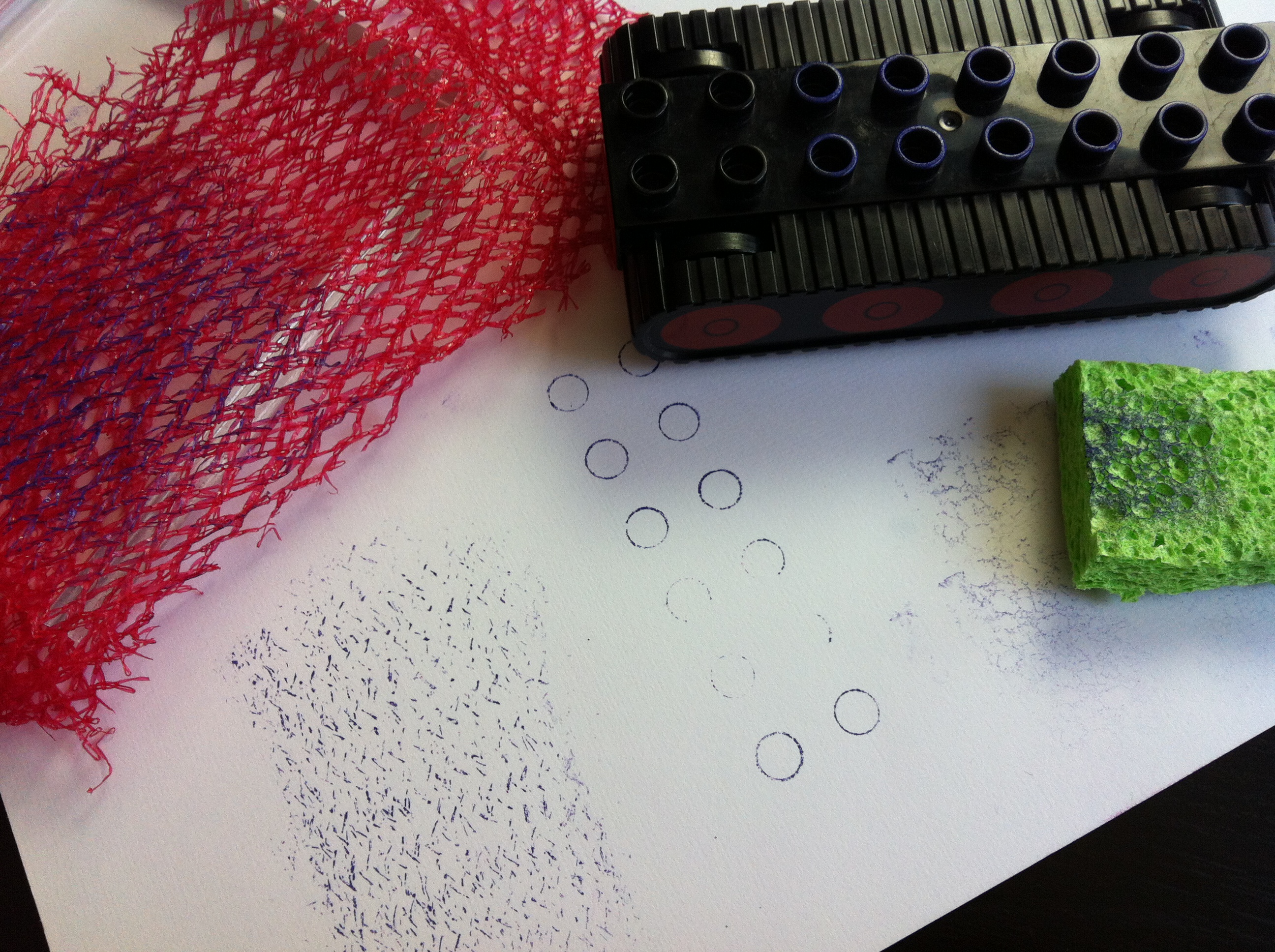 One other item you can use (upcycle and make cool impressions) is bubble wrap. You wrap it around your block like the mesh and go to town! Something else I’ve seen used is rubber bands… use several or a couple, wrap around the block again, and you are off and running!