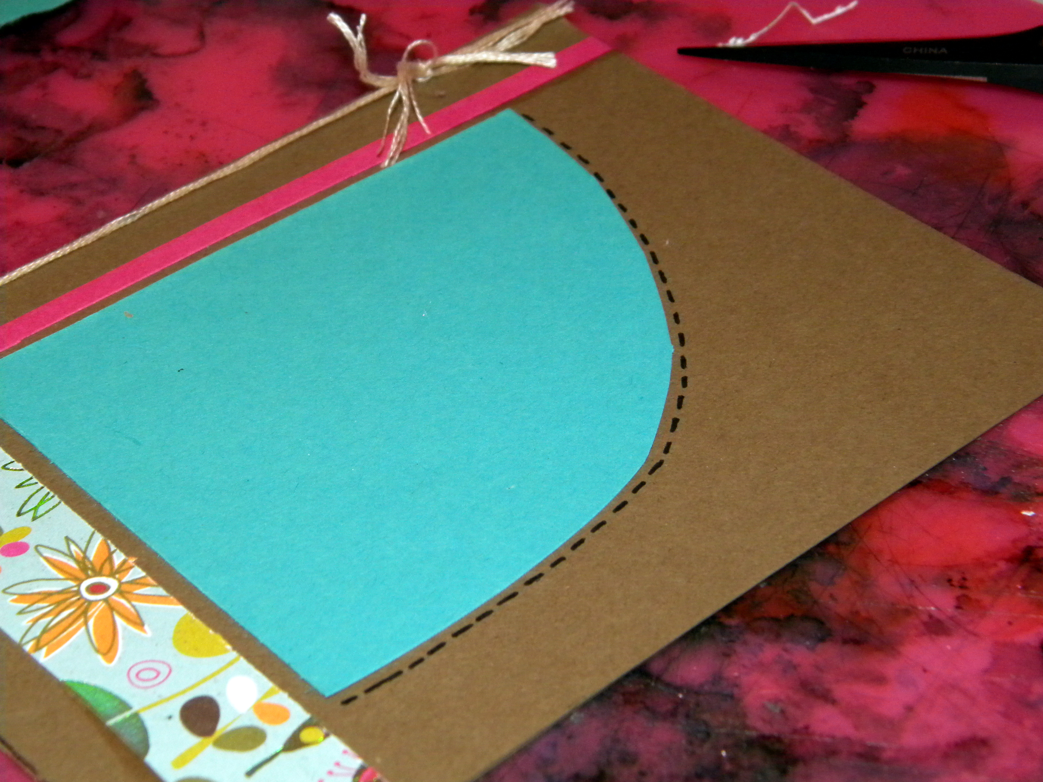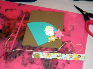 Add in some of that “faux” stitching with a black gel pen! Also tie some embroidery floss around the card – wrap it around two or three times for texture and interest! š