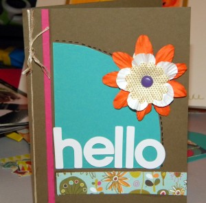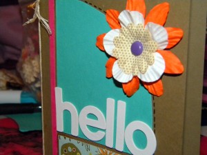 Layer up those flowers in fun bright colors and attach with a colorful fun brad!Ā Add these bright white vinyl Thickers to the front and Say Hello! š